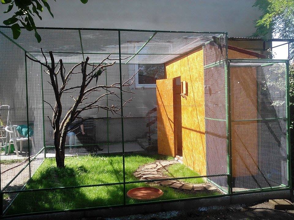 Az egyik nehézség abban rejlett, hogy miután papagájoknak Pyrrhura perlatáknak szántam. az élőnövényes röpde dőre reménynek ígérkezett, mint ahogy később be is következett a növényzet pusztulása a madarak miatt.