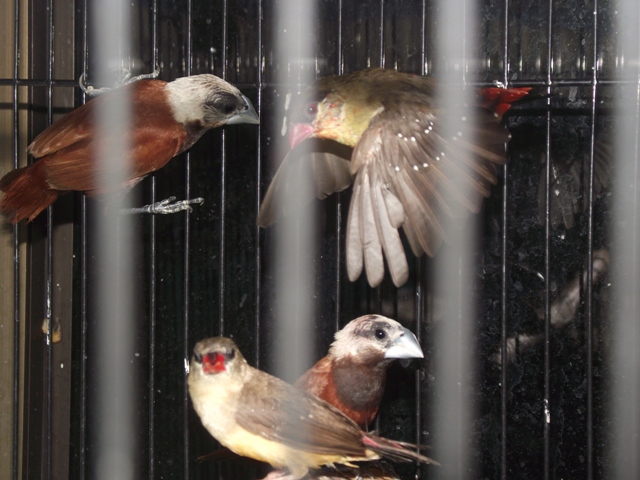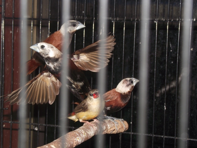 Azonban meg aznap, hogy ot megvettem, azt talaltam, hogy a masodik helyi piacon is felbukkant par feketetorku! Ott azonban a jelek szerint semmi figyelemre nem erdemesitettek oket, koszosan, csapzottan be vannak keverve egy szutykos kozos ketrecbe a naluk nagyobb es sokkal kozonsegesebb feherfeju apacakkal es mezei verebekkel egyutt. Gondolom igy azok araban megvehetnem oket, de amilyen allapotban vannak, rossz rajuk nezni, es nekem 4 peldany eleg is.