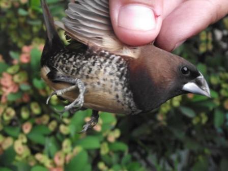 Ezt a vadbefogott madarat egy csomo feherfeju apacaval egyutt arultak egy javai madarpiacon.