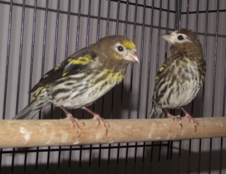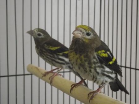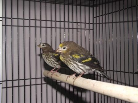 Ugy tunik talan nemi sikerrel, mert egyelore megmaradt a him is, sot talan, mintha, remelem, lekopogom, javulna is az allapota... reggelente meg mindig borzol, de napkozben nem vagy kevesbe, ugral, es a tojoval egymasnak valaszolgatva csivitelnek. Azonban a him tovabbra is szinte teljes idejet az etetoben tolti, es az apro alomkukacokat csak csocsalja csoreben, majd vegul lenyeles helyett leejti, aztan ujert nyul. A kukacokon kivul kizarolag fenymagot esznek meg.