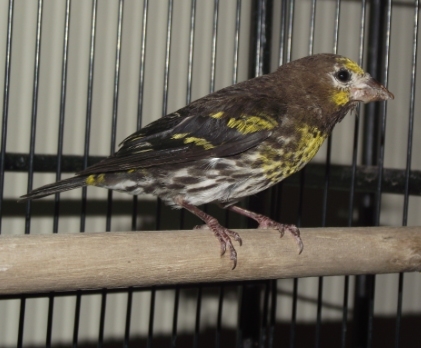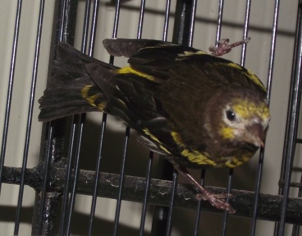 Mikor hazahozam oket, a tojo oke volt, de a him este csak ult a kalitka aljan, es masnap reggel is borzolt tollgolyo volt, es mikor fel akart ugrani az ulorudra, elvetette. Megfogva azt eszleltem, hogy a mellcsontja ugy kiallt, mint egy kespenge.