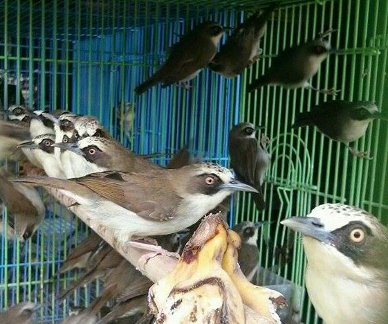 En par napja lattam eloszor egy arusnal (aki szerint Malajziabol szarmaznak, amit eros ketkedessel hallgattam), korabban soha semmi hasonlot, igy rogton szemet szurtak. Hazaterve aztan a teljes orszagot lefedo 3 hatarozom egyikeben sem talaltam ilyen fajt, sot meg a DK-Azsia szarazfoldi reszenek madarait bemutatoban sem.