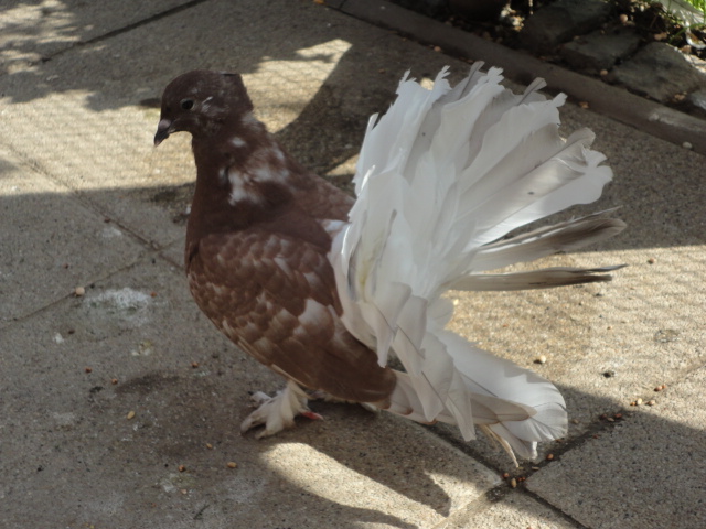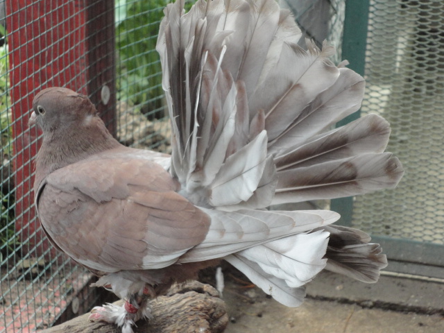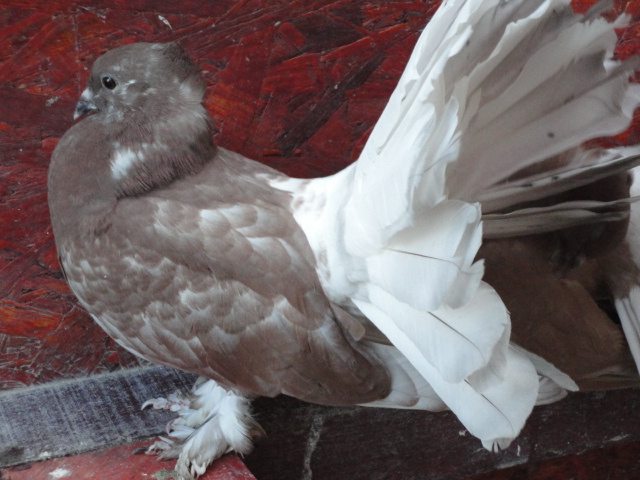 A képen látható galamb már idei fióka. (Apja levendula szín, anyja vörösfakó.Nagyapja fekete, nagyanyja fehér.)