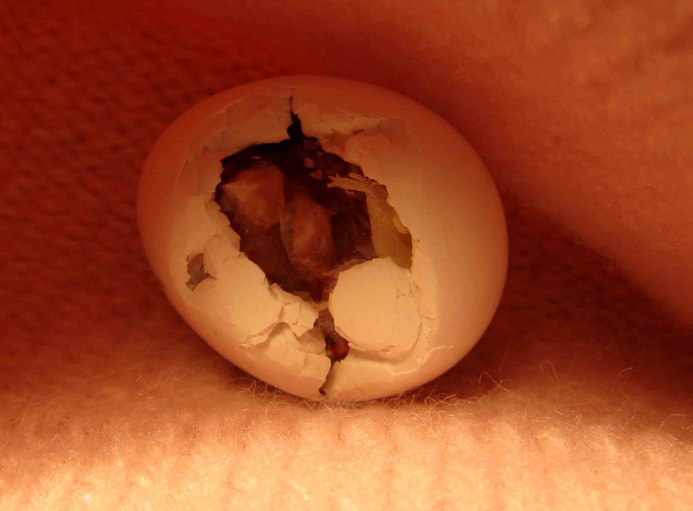 Na megvolt az ellenőrzés: az egyik tojás szó szerint csipog :) A másik viszont gyanúsan könnyű volt, de átvilágításnál sötét volt. Igaz, hogy egy sima led lámpám van csak.