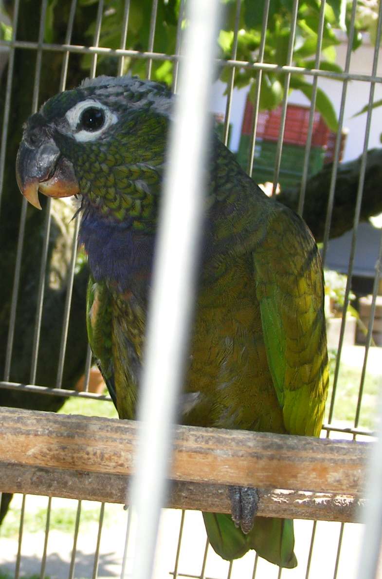 Hát igen, rákerestem, valóban feketefülű. A fején van egy seb, meg megkopaszodott mert történt vele egy kis baleset, fatert megcsipte és nekirepült az abalaknak, a reluxa meg leszedte a tollát - bőrét nem annyira. Remélem hejrejön. Eléggé hunyorog, gyümölcsöket meg diót-napraforgót adtunk neki. Holnap kap nagypapagáj eleséget.