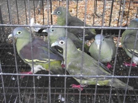 volt Treron vernans. egy fiatal hím 200€-ért kelt el. Az illető ajánlot egy másik tenyész "párt" is ,a hím 200€, a törött ( lógós) szárnyú párja grátisz. Elmondási szerint a fiatal hím ezek gyereke volt. Nagy volt a kísértés, de ellenálltam. A tojó szürkés színű , volt némi fehéres mitával. Itthon utánna néztem és a T. vernans tojó is zöldes alapszínű sárgás szárny él mintázattal!?
