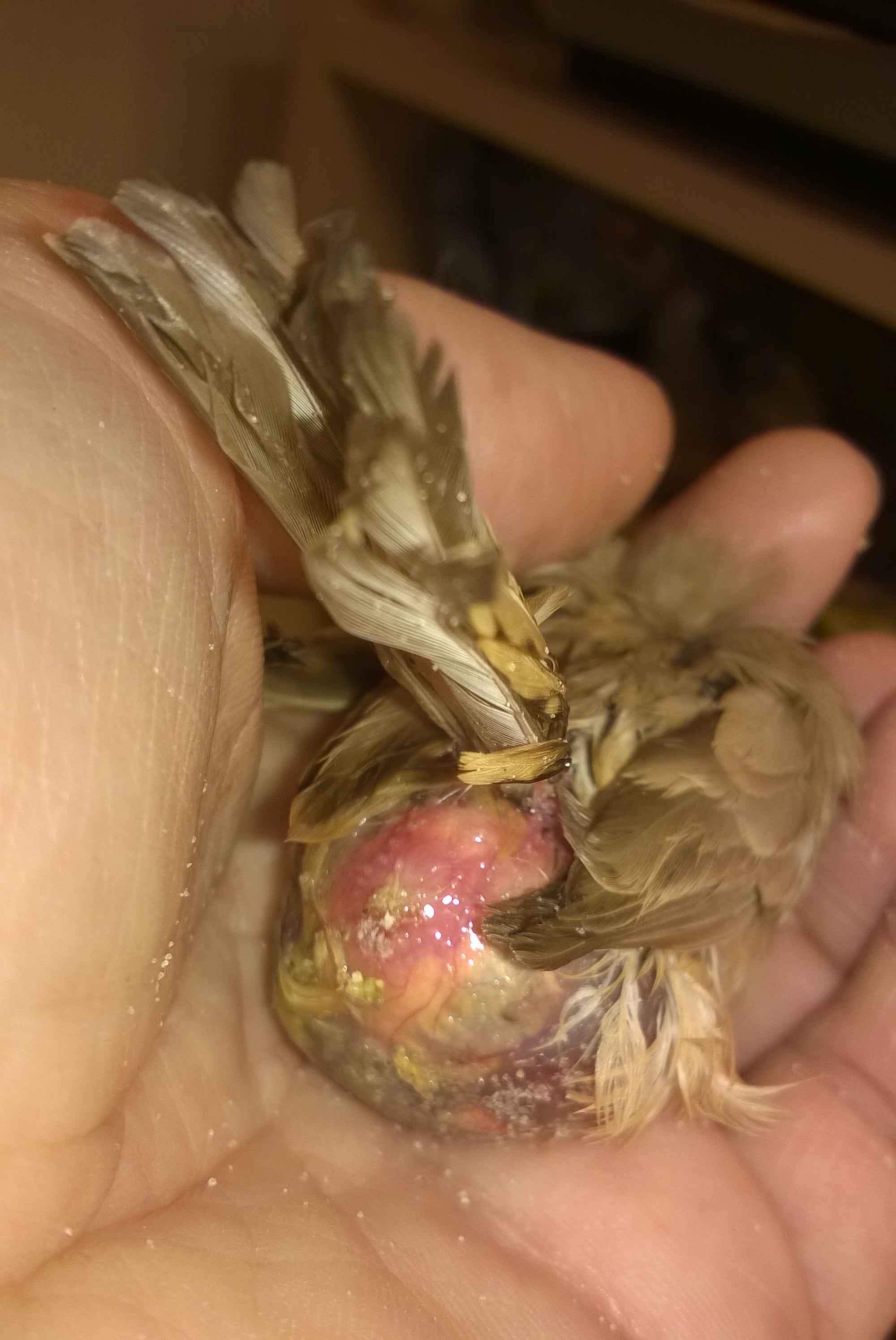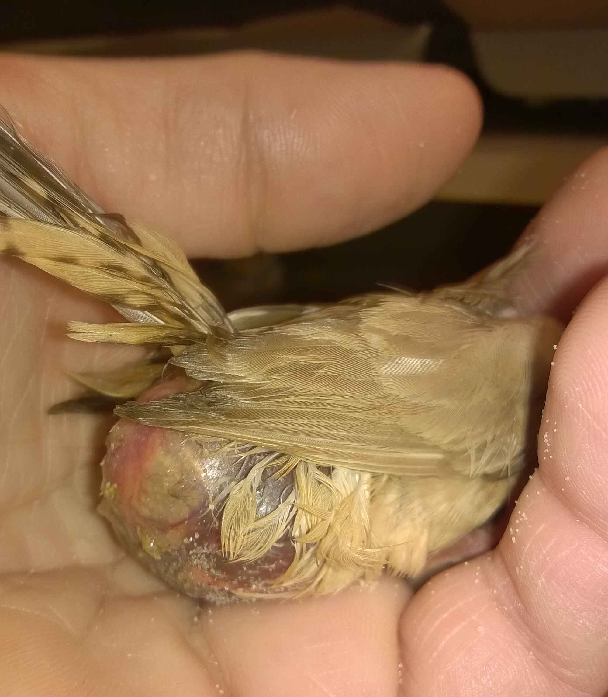 ahogyan szétnyílt a tollazata, láthatóvá vált egy duzzanat, ami eléggé megrémített!